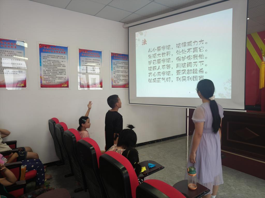 古人云“书读百遍,其义自见”,为进一步推动《中华人民共和国未成年人保护法》的学习宣传,实践团成员与孩子们开展了“童声里的法治”主题朗诵活动,组织孩子们诵读未成年人保护法中与自身权益保护密切相关的法条节选,并加以简短的个人解读。真挚的童声,诵读着庄严的法律;精彩的解读,分享着学法的感悟。孩子们齐声朗读,以“童声”话“法治”,提高了他们对法律的理解和敬畏,营造了未成年人保护法学习宣传的浓厚氛围,培养孩子们的朗读技能,展示孩子们的青春风采的同时有助于引导孩子们形成正确的人生观、价值观。
