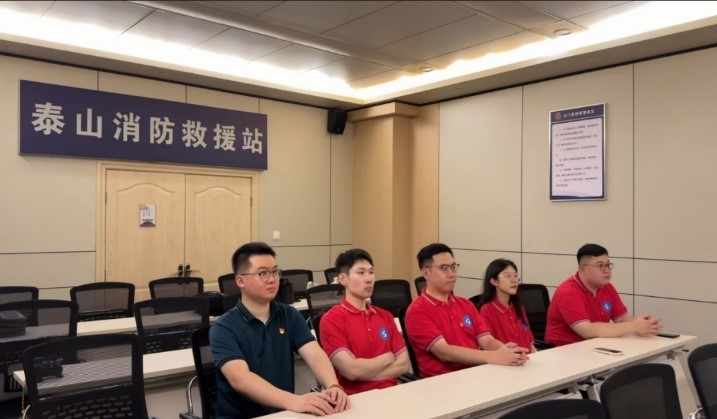 7月25日,成员们首先来到了泰山消防救援站,通过与消防救援战士的互动交流与现场学习,深入了解该救援站成立的背景、发展过程及其在维护泰山消防安全中的核心作用,体会到“泰山卫士”锦旗背后消防站战士们所付出的坚守和付出。成员们还学习到了消防救援战士勇挑重担、永不懈怠、一往无前的“挑山工”精神,成员们不仅对消防工作有了更深的理解和尊重,还更深入地体验和理解泰山文化的丰富内涵,在心灵上得到启发和教育。