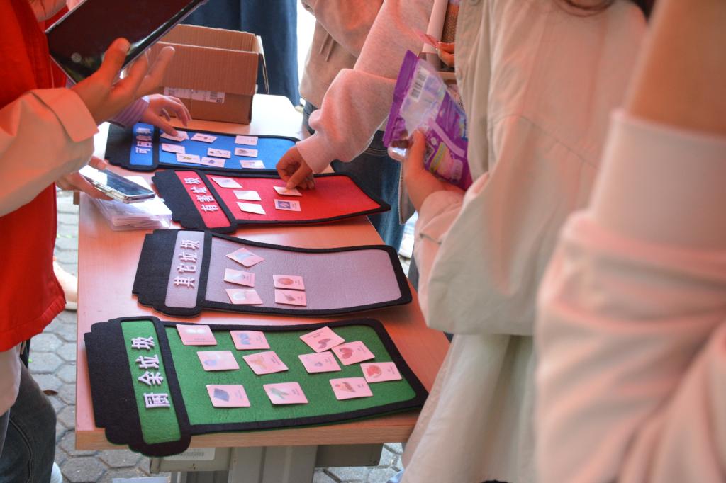 为积极响应垃圾分类的号召,提高同学们的环保意识,文法公司在繁星广场举办“见‘圾’行事,分‘投’行动”垃圾分类活动通过趣味游戏的方式,让同学们在轻松愉快的氛围中学习垃圾分类知识。
