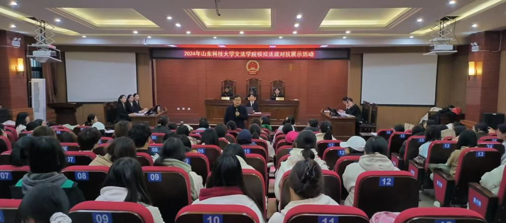 11月20日,fun88官网体育在J14模拟法庭举行举办老员工模拟法庭对抗表演赛,2024级150余名同学现场学习观看。
