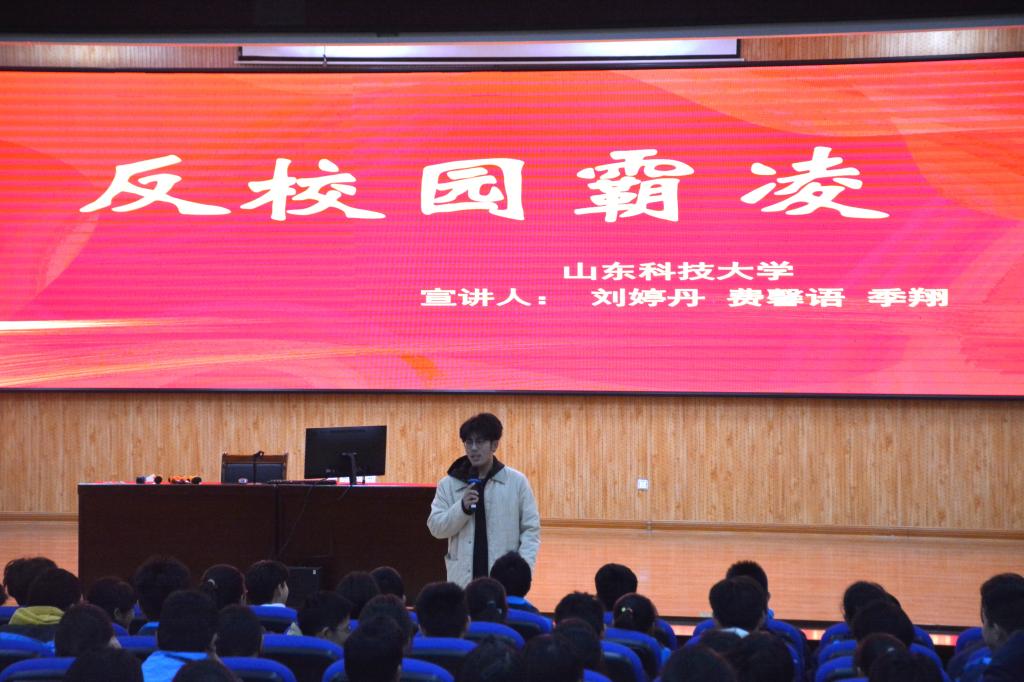 活动中,主讲同学聚焦校园霸凌这一社会热点问题,通过生动的讲解和真实的案例分析,向同学们揭示了校园霸凌的危害性和应对策略。并结合社会案例,深入浅出地传授了如何向老师、家长求助,以及如何勇敢地拒绝霸凌行为等实用技巧,鼓励同学们在面对不公时敢于发声,勇于保护自己。此外,还通过普及刑法知识,引导初中生认识生活中的潜在犯罪风险,提高他们的法律意识和自我防范能力。宣讲过程中,成员们详细介绍了未成年人依法享有的各项权益,包括人身安全、受教育权、隐私权等,让同学们深刻体会到未成年人权益保护的重要性和广泛性。