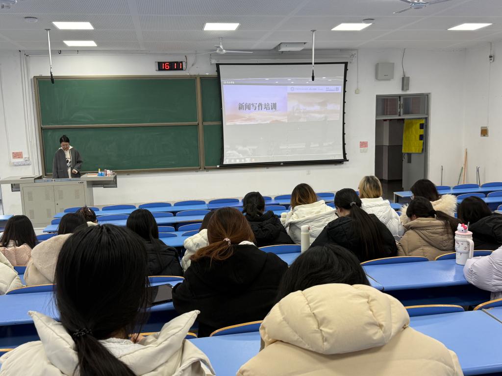 会上,王老师结合自身丰富的新闻宣传工作经验,围绕新闻写作的核心要素、不同类型新闻稿的撰写技巧、新闻图片的拍摄规范与构图技巧,以及微信公众号的运营策略等关键内容,进行了深入浅出的系统讲解。为帮助同学们更好地理解吸收,王老师还精选了优秀新闻作品案例,通过分析稿件结构、语言表达亮点,直观呈现优秀新闻作品的创作逻辑,并针对同学们在日常稿件撰写、活动拍摄、平台运营中遇到的选题难、表达不精准、传播效果不佳等常见问题,进行了细致解答和针对性指导。
