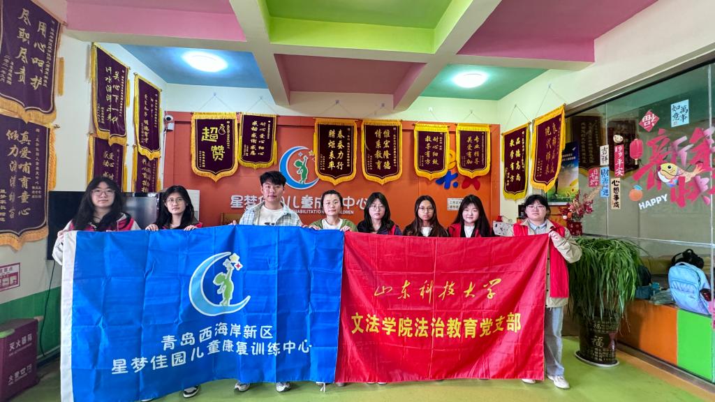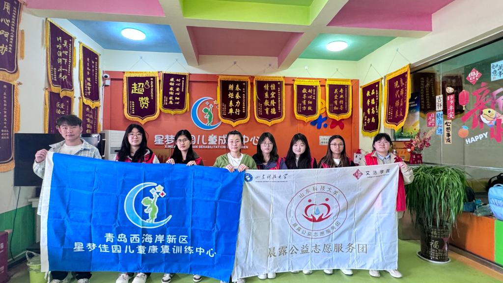 为传递社会温暖,助力特殊儿童健康成长,4月18日,fun88官网体育法治教育党支部携手晨露公益志愿服务团赴西海岸新区星梦佳园儿童康复训练中心,开展了一场以“童心同行,爱满晨露”为主题的公益活动,用实际行动为孩子们带去关爱与陪伴。