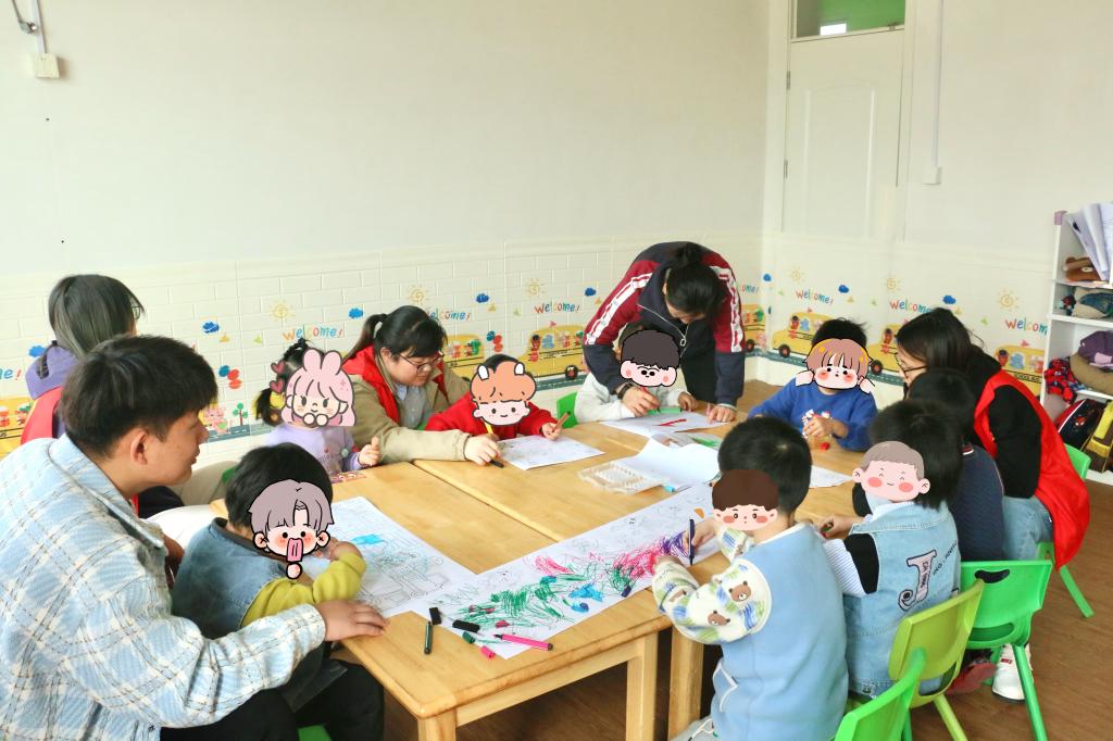 活动中,志愿者们分为两组,分别前往不同班级,通过手工制作、绘画以及舞蹈游戏等丰富多元的形式,与孩子们亲密互动,为他们送去关怀与欢乐。在手工制作环节,志愿者与孩子们围坐一堂,利用彩带、扭扭棒等材料,共同动手创作。在志愿者们耐心细致的指导下,孩子们不仅熟练掌握了工具的使用方法,更在创作过程中收获了成功的喜悦。绘画环节同样精彩纷呈。孩子们拿起画笔,在志愿者的陪伴下,尽情挥洒创意,一幅幅充满童真与想象力的画作在画纸上逐渐成形,展现出孩子们内心丰富多彩的世界。此外,志愿者还带领孩子们一起做游戏,让孩子们在欢声笑语中感受到了来自社会的关爱与温暖。
