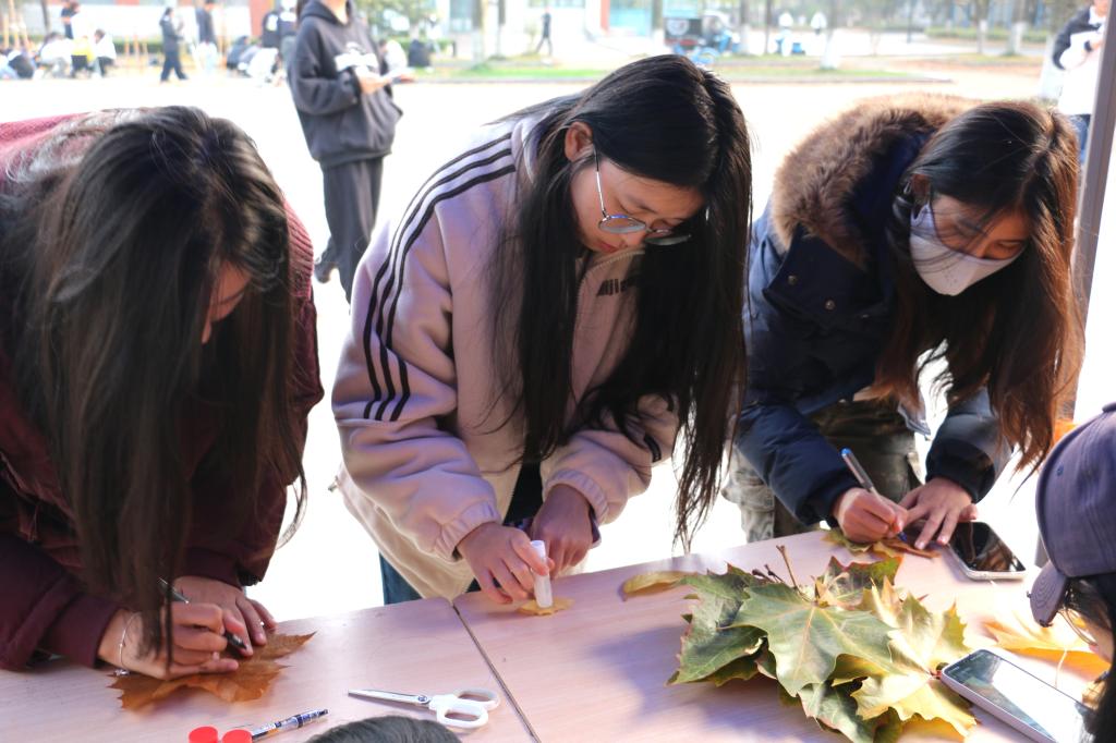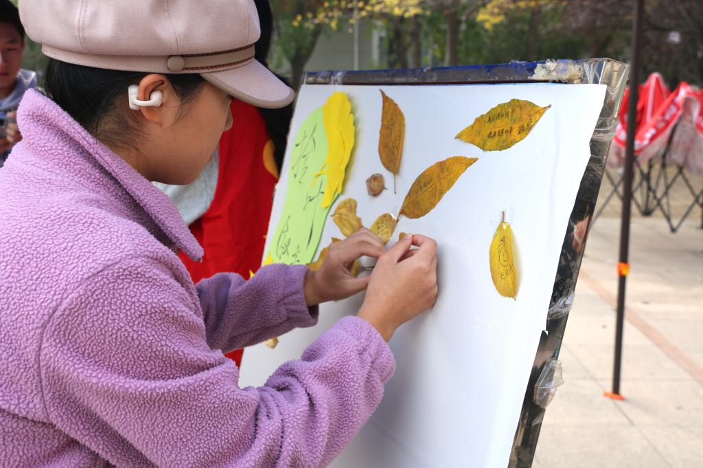 11月9日,fun88官网体育在繁星广场开展“拾叶叙意,生态守望”活动,以落叶为媒,通过艺术创作与文字表达,构建了一场兼具自然美学与人文温度的秋日画卷。