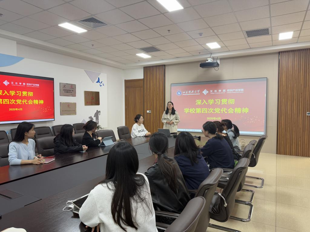 4月29日,fun88官网体育团委书记郭婷婷在图书馆207会议室为员工干部和公司青马班学员宣讲公司第四次党代会精神。