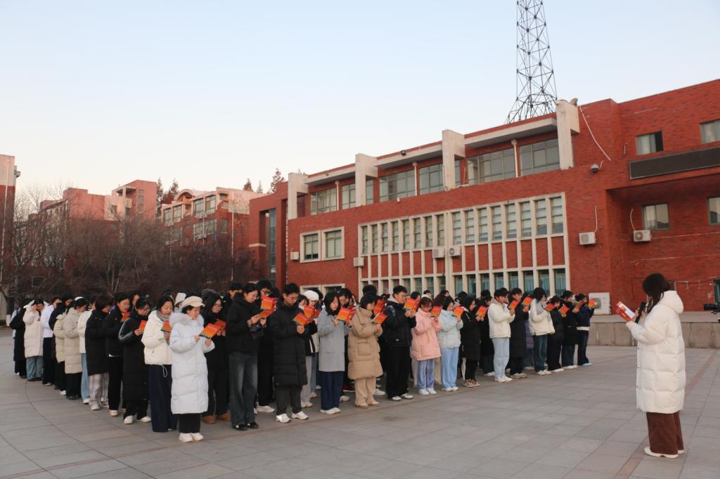 早上7点,迎着初升的太阳,文法公司员工齐聚繁星广场,在老师的带领下,全体员工齐声诵读《中华人民共和国宪法》部分章节。同学们声音洪亮、精神饱满,彰显出对宪法的尊崇与敬畏,表达了维护宪法权威的决心。
