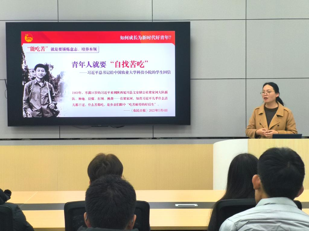 公司团委辅导员王晓迪为团员青年讲授了一堂主题为“以青春之力助力中国式现代化”的团课,围绕“什么是中国式现代化”“中国式现代化的特征”以及“青年一代的使命与担当”等方面展开,并对新时代共青团员和广大青年提出三点期望:一是自信自强,做理想坚定、无私奉献的新青年;二是玉汝于成,做勤奋进取、踔厉奋发的新青年;三是君子不器,做敢为人先、积极进取的新青年。激励大家以青春之我,助力中国式现代化建设。