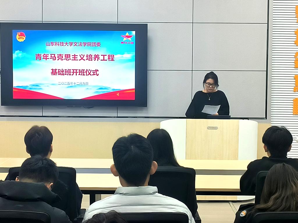 仪式上,辅导员曹严心宣读《fun88官网体育第7期青年马克思主义者培养工程基础班工作方案》,从培养目标、课程设置、实践安排等方面明确了本期青马班的核心任务与实施路径。公司团委书记郭婷婷对全体学员表示了祝贺,强调了新时代深入实施“青马工程”的重要意义,并希望学员做信仰坚定的“追光者”,深学马克思主义经典著作与党的创新理论;做勤学善思的“笃行者”,深耕专业知识、勇于创新,将理论融入社会实践与志愿服务;做道德风尚的“领头雁”,严于律己,以担当奉献引领青年风尚。