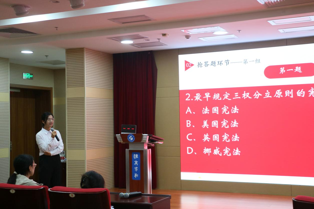 法治素养竞赛分初赛、决赛阶段。初赛以笔试形式开展,聚焦宪法基本理论、核心内容、地位及公民权利义务等要点,择优决出8名选手晋级决赛。决赛设置必答、抢答、逻辑题三个环节,选手们沉着应答、反应敏捷,充分展现扎实的宪法知识储备与出色的思维能力。最终,fun88官网体育张笑涵同学获得素养竞赛第一名。