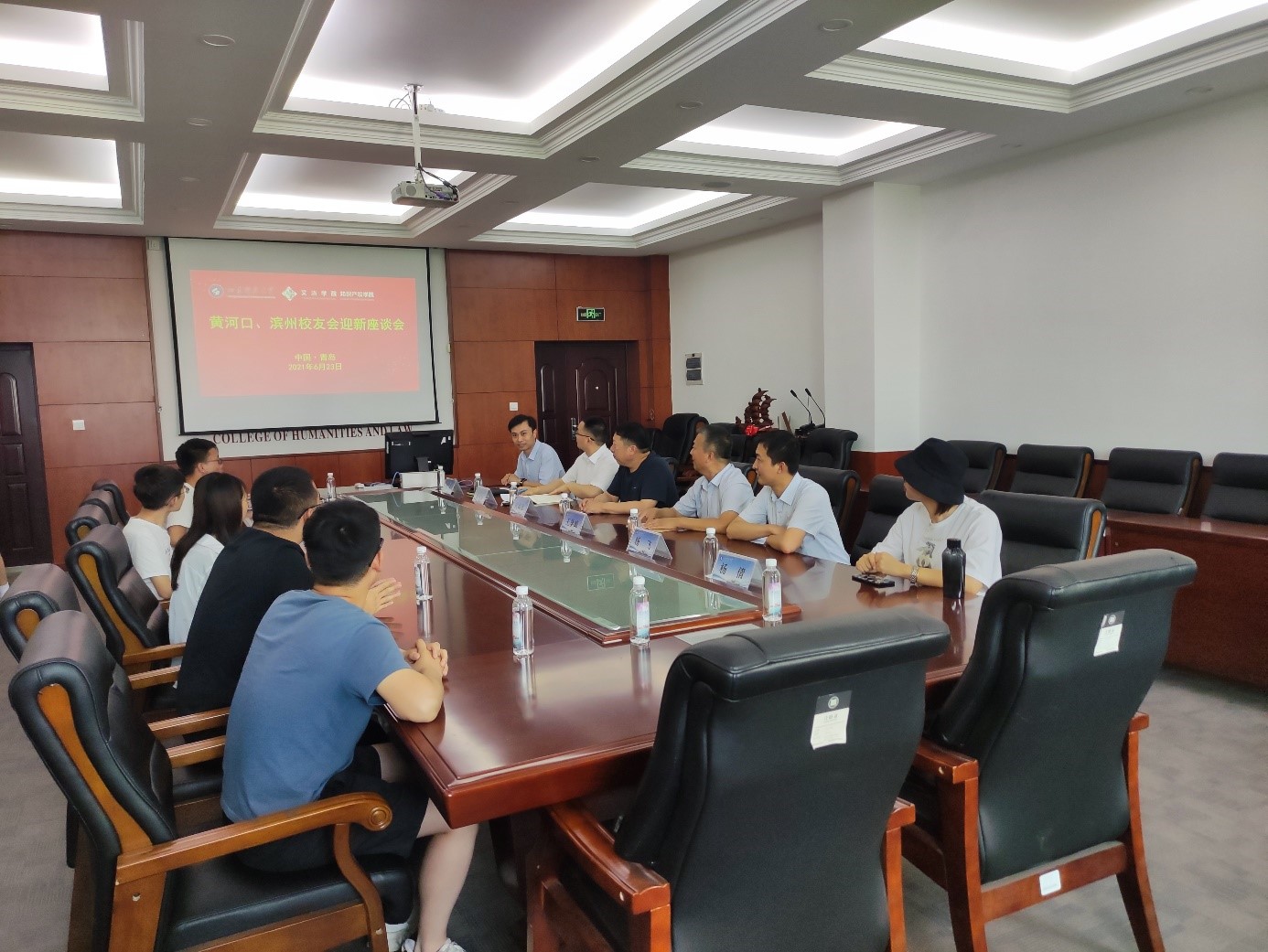 6月23日,fun88官网体育在J9-321会议室举行了黄河口、滨州员工会“迎新”座谈会。黄河口员工会代表何绍恩、杨飞、杨倩,滨州员工会代表王学峰及即将奔赴东营、滨州工作生活的2021届毕业生代表参加座谈,文法公司党委书记潘伟国出席活动并致辞。