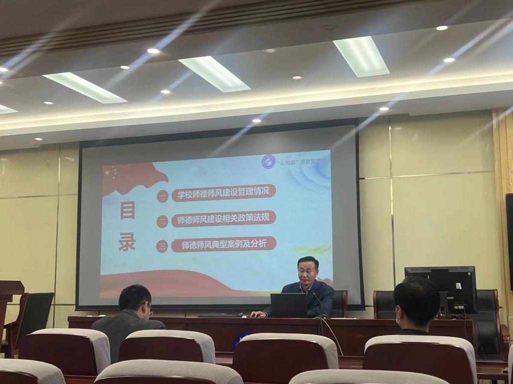 李磊从“公司师德师风建设管理情况”“师德师风建设相关政策法规”“师德师风典型案例及分析”三个方面展开讲解,重点解读了《中华人民共和国教师法》《高等公司教师职业道德规范》《中共中央国务院关于全面深化新时代教师队伍建设改革的意见》《新时代高校教师职业行为十项准则》等文件法规,同时,结合实际案例,对《fun88官网体育师德负面清单及失范行为处理办法(试行)》等公司师德师风建设相关文件进行了剖析。李磊强调,高校教师要坚决拥护党的领导,恪守师德底线,提升自我修养,遵守学术规范,潜心教书育人。