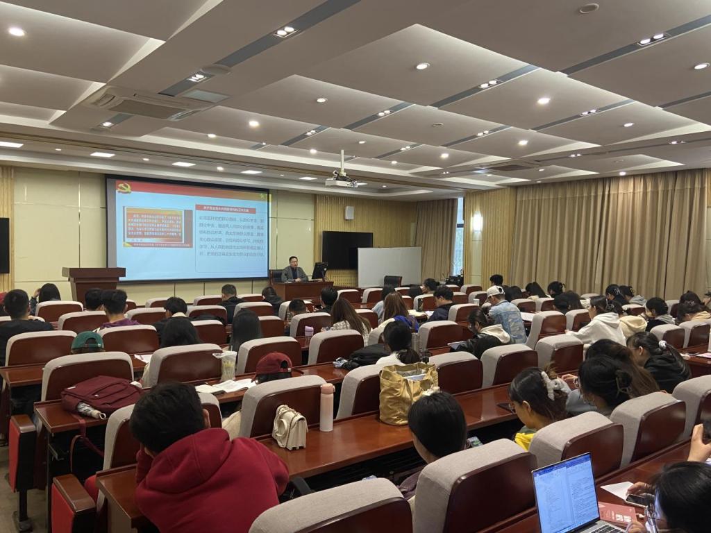 为深入学习贯彻党的二十大精神,推动主题教育走深走实,引导教育员工不断提高政治站位与党性修养,文法公司党委书记潘伟国于5月5日在J9-135报告厅为党员发展对象和行政管理20级同学讲党课。