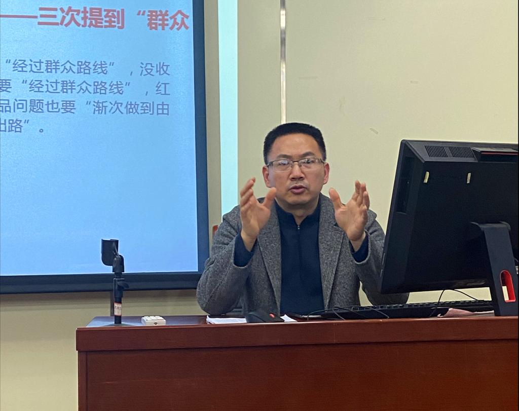 本次党课的主题是“群众路线”,潘伟国从“什么是群众路线”、“群众路线的由来和发展”、“新时代怎样坚持群众路线”、“新时代如何践行群众路线”四个方面进行了细致讲解。